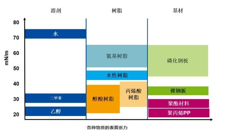 为什么现在的涂料工程师嘴里一直讲降低表面张力了?那是因为,随着水性漆的不断发展,很多企业都在油改水,由油性漆改换水性漆,而原来的油性漆中各种溶剂的表面张力都集中在20-40之间,唯独水的表面张力系数72.8mN/m(20℃)。下面一起了解下表面张力在涂料中的应用。