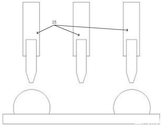 步骤S3:通过印刷机构将掺入碳粉并通入正电荷的UV油墨铺满在纸张上,由于纸张上已覆盖有固化的UV涂层,因此UV油墨在纸张上仍可自由移动,此时通过计算机处理印刷图案,进而控制印刷机构向指定金属探针输送负电荷,其余金属探针输送正电荷,当金属探针接触带正电荷UV油墨时,通过异电荷相互吸附的原理,UV油墨将向金属探针聚拢;其余探针通过同电荷相互排斥的原理,UV油墨将向金属探针反方向逃逸,待金属探针收回,UV油墨将因表面张力短时间内无法流平,再对纸张表层所有UV油墨进行最终固化;